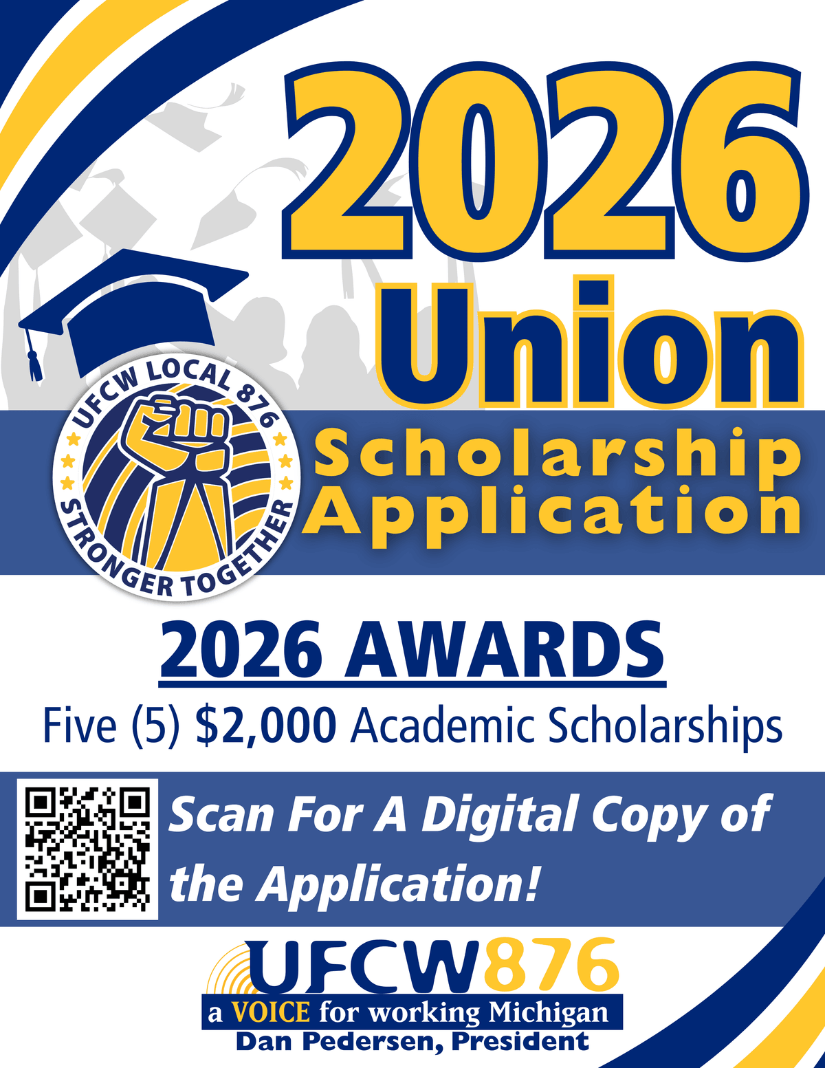 Publication: Scholarship recipients only will be notified no later than June 19, 2026 and will be provided with all information necessary to obtain their award at that time. All essays will remain the property of UFCW 876, and the union retains the right to print any submitted essay in any of its publications or on its website. UFCW 876 also reserves the right to publicly use the names and any images of the winners for promotion of its scholarship program.